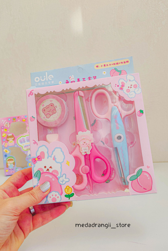 شامل: قیچی ساده،قیچی دالبر،کاتر خرگوش،چسب نواری دوطرفه و 30 برگ کاغذ رنگی با رنگای خاص😍💓