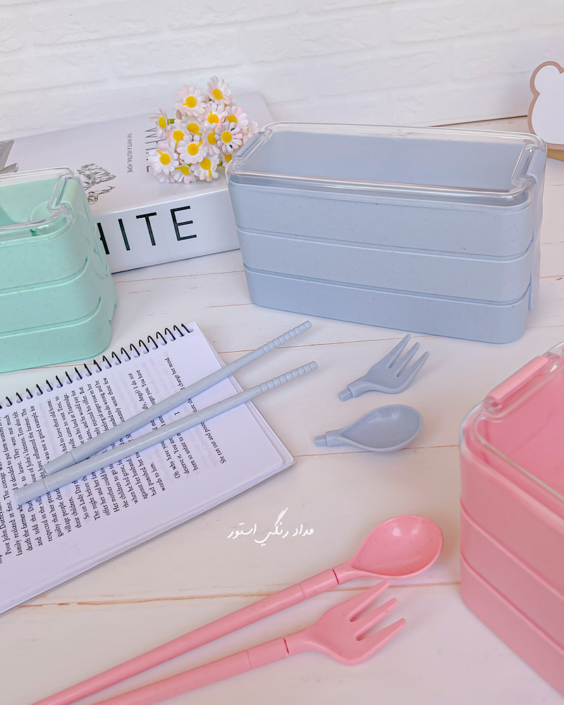 لانچ باکس سه طبقه باچاپستیک وقاشق چنگال